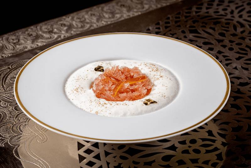 Special ingredients like dates are included in dishes such as creamy Zagora Medjool dates with fresh milk mousse and orange blossom water