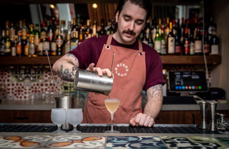 From Kevin Demers (owner of other beloved Montreal bars El Pequeño, Coldroom and Bar Bello), international barman Robert Weeks, and former Dead Rabbit director of education and hospitality consultant Gregory Buda, the petite Bisou Bisou celebrates the art of the aperitif by putting a spotlight on fortified wines, low-and-no alcohol cocktails and amari. Small bar bites like olives and bread with cornichons supplement an expert collection of conservas, cheese and charcuterie. The charming Mediterranean-style bar reveals the exposed stonework of Rue Saint-Vincent in Old Montreal, sprinkled with Portuguese tile to create a bright but intimate space – capacity hovers around 60 – making it perfect for date night or catching up with old friends.