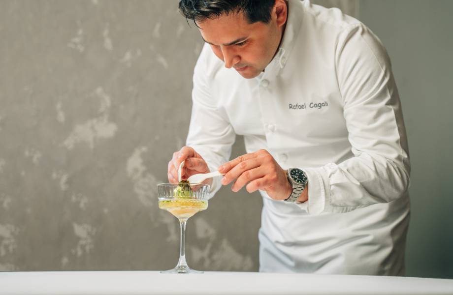 The main dining room was also remodelled, with the widened kitchen area allowing guests better connection to the chefs at work. Dishes are picture-perfect and singular to Cagali’s mixed Italian-Brazilian background. A quail course comes as three components: a skewer of the perfectly cooked breast, liver parfait on brioche topped with shavings of winter truffle and a trio of tortellini filled with confit leg meat submerged in a consommé made with the bird’s carcass. Other beloved signatures, such as Cagali’s interpretation of the traditional Brazilian moqueca (fish stew), made with turbot, farofa (toasted cassava flour) and Brazil nuts, have stayed unchanged since the renovation. Tied in with attentive service and a joyous soundtrack of the greatest hits from the 70s and 80s, it’s a must-visit location for all London gourmets.