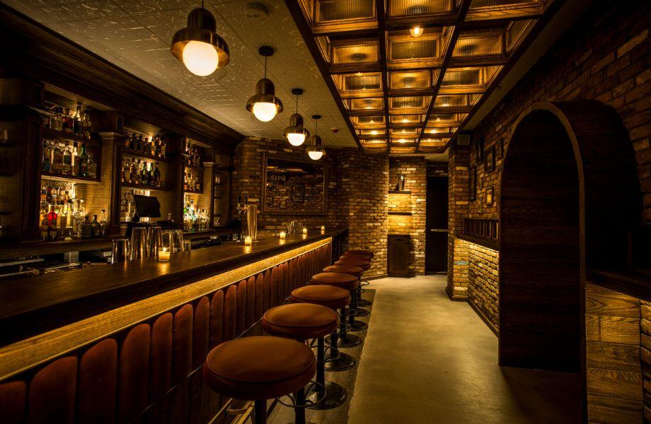 Bar impresario Shingo Gokan teamed up with former Employee’s Only bartender Steve Schneider to bring New York a taste of what makes his international portfolio so renowned with Sip & Guzzle. That bar is comprised of a bustling upstairs space that pays homage to American drinking culture with understated updates on classic cocktails (Guzzle), and a quieter, more intimate downstairs space taking inspiration from Japanese cocktail culture (Sip). Downstairs bartender Ben Yabrow (formerly of Double Chicken Please and SG Club) turns up the volume with high-concept cocktails like the Doctor Green, a carbonation of tequila, tomatillo, green apple, shiso and horseradish. With quirky elevated bar snacks – the Volcano Roll with spicy bluefin tuna and coconut sticky rice is an extra-decadent splurge – the experience is nothing short of glamorous.